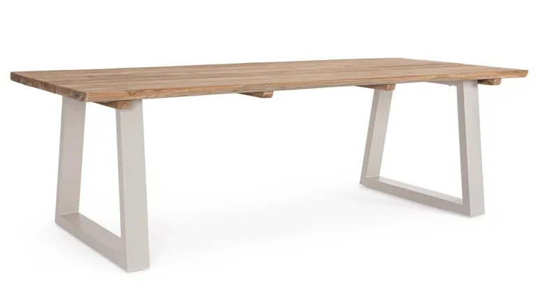 PIANO IN LEGNO TEAK (SEZIONI ORIGINALI DI TRONCO) – SVLK (LEGNO CERTIFICATO PROVENIENTE DA FORESTE SOSTENIBILI). FINITURA NATURALE. GAMBE IN ALLUMINIO VERNICIATE A POLVERE (POLIESTERE). VITERIA IN ACCIAIO INOSSIDABILE. PIEDINI REGOLABILI. QUESTO PRODOTTO È CARATTERIZZATO DALLA PRESENZA DI TASSELLI IN LEGNO DELLA STESSA NATURA. EVENTUALI FESSURE, CREPE O IMPERFEZIONI, CHE POSSONO GENERARSI ANCHE NEL CORSO DEL TEMPO, SONO CARATTERISTICHE DI QUESTO MATERIALE E RENDONO OGNI PEZZO UNICO E ORIGINALE. GAMBE DA ASSEMBLARE. ATTENZIONE CODICE IN ABBINAMENTO.