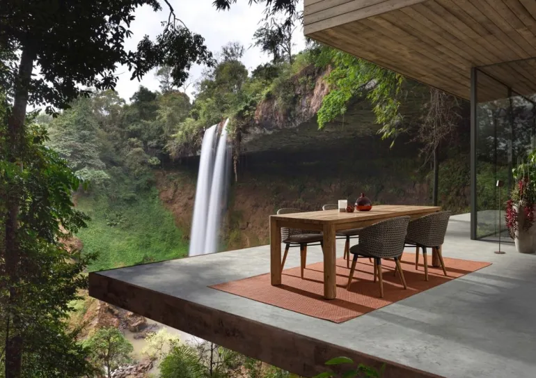 PIANO E GAMBE IN LEGNO TEAK RICICLATO – SVLK (LEGNO CERTIFICATO PROVENIENTE DA FORESTE SOSTENIBILI). FINITURA NATURALE SPAZZOLATA. VITERIA IN ACCIAIO INOSSIDABILE. IL PRODOTTO IN LEGNO RICICLATO È CARATTERIZZATO DALLA PRESENZA DI TASSELLI IN LEGNO DI DIVERSE SPECIE E COLORE. EVENTUALI FESSURE, CREPE O IMPERFEZIONI, CHE POSSONO