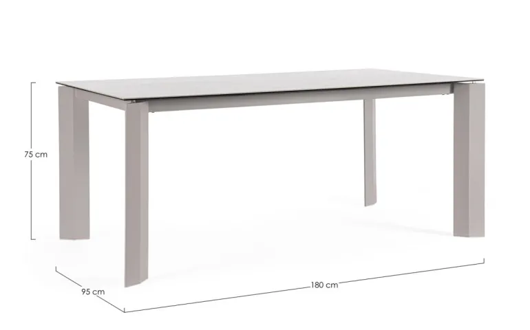 STRUTTURA IN ALLUMINIO VERNICIATO A POLVERE (POLIESTERE). PIANO IN CERAMICA (CON BASE IN VETRO) SPESSORE TOTALE 9MM. VITERIA IN ACCIAIO INOSSIDABILE. GAMBE DA ASSEMBLARE.