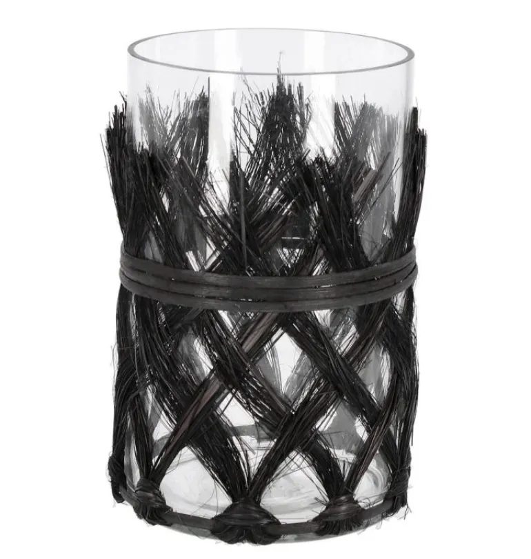 VETRO E RAFIA DA PALMA. PRODOTTO FATTO A MANO. EVENTUALI VARIAZIONI DI COLORE, TONALITÀ O IMPERFEZIONI SONO DA CONSIDERARSI UNA CARATTERISTICA DI UNICITÀ. IL MATERIALE NATURALE ESTERNO NON DEVE ESSERE POSTO A CONTATTO CON L’ACQUA. SOLO PER USO INTERNO.